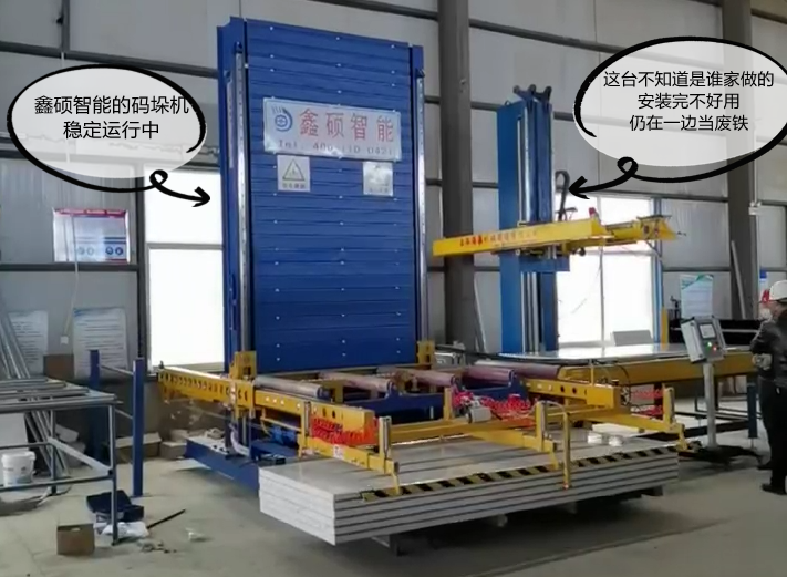 在客戶的印象里,鑫碩智能的產(chǎn)品第一印象就是貴,但是貴有貴的道理,凡是用過鑫碩智能設(shè)備的客戶,沒有說過設(shè)備不好的。一方面是對設(shè)備的品質(zhì)認可,另一方面是對鑫碩智能的服務(wù)認可。所以買東西不能總盯著價格,最重要的是看品質(zhì)。鑫碩智能夾芯板碼垛機,用過絕不會后悔